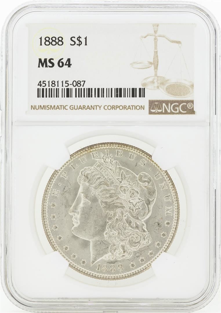 One 1888 MS64 NGC Morgan Silver Dollar NGC Certified.