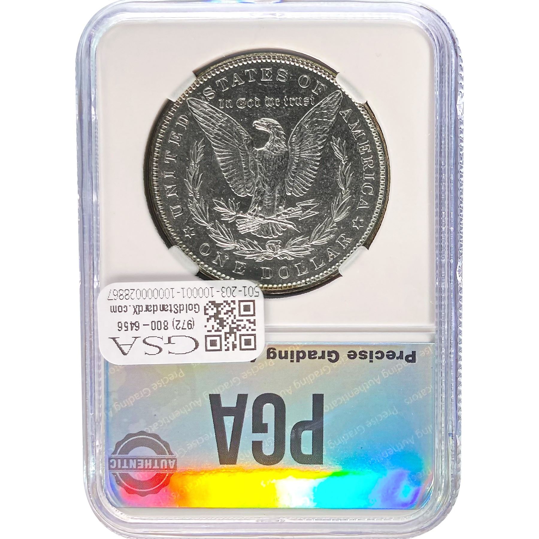 e. Coins sold referencing a third-party grading service are sold “AS IS” without any express or implied warranty, except for a guarantee by GSA that they are genuine. Removal or alteration of the holder, voids all of Bidder’s claims concerning that Product. Certain warranties may be available from the grading services and Bidders are referred to them for further details: Numismatic Guaranty Corporation (NGC), PO Box 4776, Sarasota, FL 34230, www.ngccoin.com/services/writtenguarantee.asp; Professional Coin Grading Services (PCGS), PO Box 9458, Newport Beach, CA 92658, www.pcgs.com/guarantee.html; ANACS, 6555 S. Kenton St., Ste. 303, Englewood, CO 80111; and Independent Coin Grading Co. (ICG), 7901 East Bellview, Ave., Suite 50, Englewood, CO 80111.