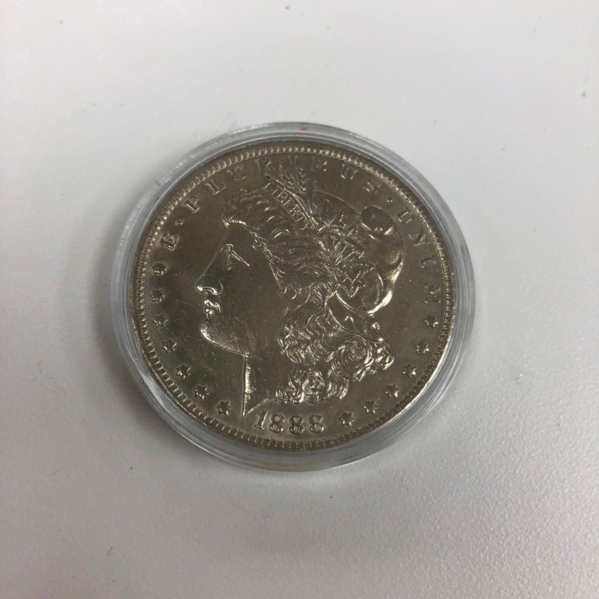 Obverse Liberty head, facing left Lettering: E·PLURIBUS·UNUM LIBERTY 1888 Engraver: George T. Morgan Reverse Eagle holding arrows and olive branch, within wreath NOTE: The mintmark is above DO of DOLLAR Lettering: UNITED STATES OF AMERICA In God we trust S * ONE DOLLAR * Engraver: George T. Morgan Specifications Country: United States Type: Standard circulation coin Years: 1878-1921 Value: 1 Dollar 1 USD = 1.33 CAD Composition: Silver (.900) Weight: 26.73 g Diameter: 38.1 mm Thickness: 2.40 mm Shape: Round