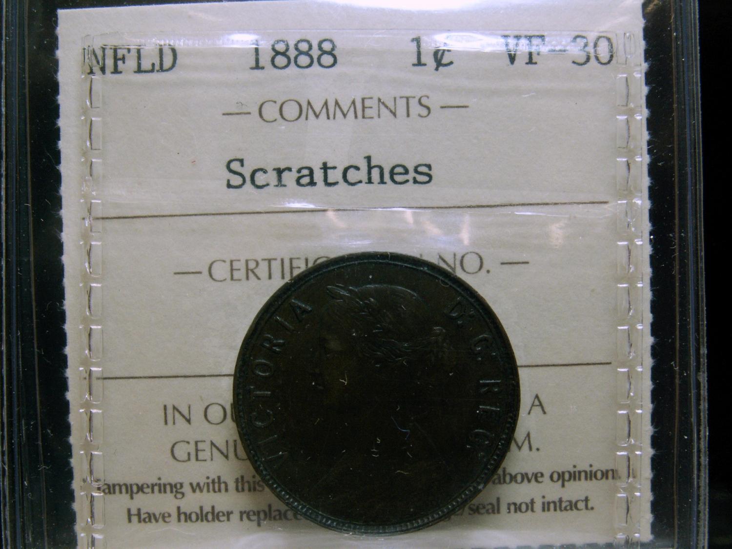 1888 NFLD 1¢ ICCS VF30 Scratches