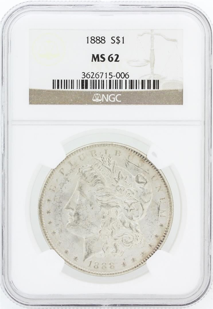 One 1888 NGC MS62 Morgan Silver Dollar. NGC Certified.