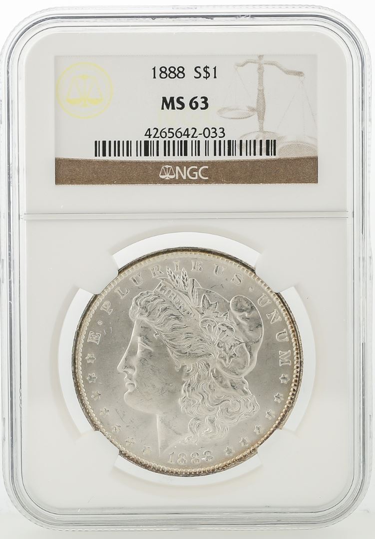 One 1888 NGC MS63 Morgan Silver Dollar. NGC Certified.
