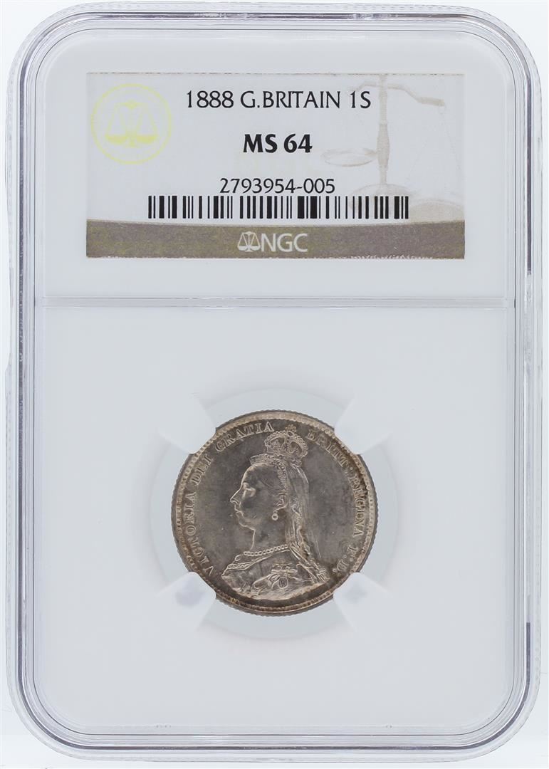 One 1888 NGC MS64 Great Britain 1 Shilling Silver Coin. NGC Certified.