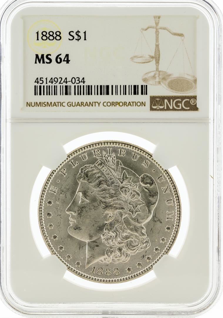 One 1888 NGC MS64 Morgan Silver Dollar. NGC Certified.