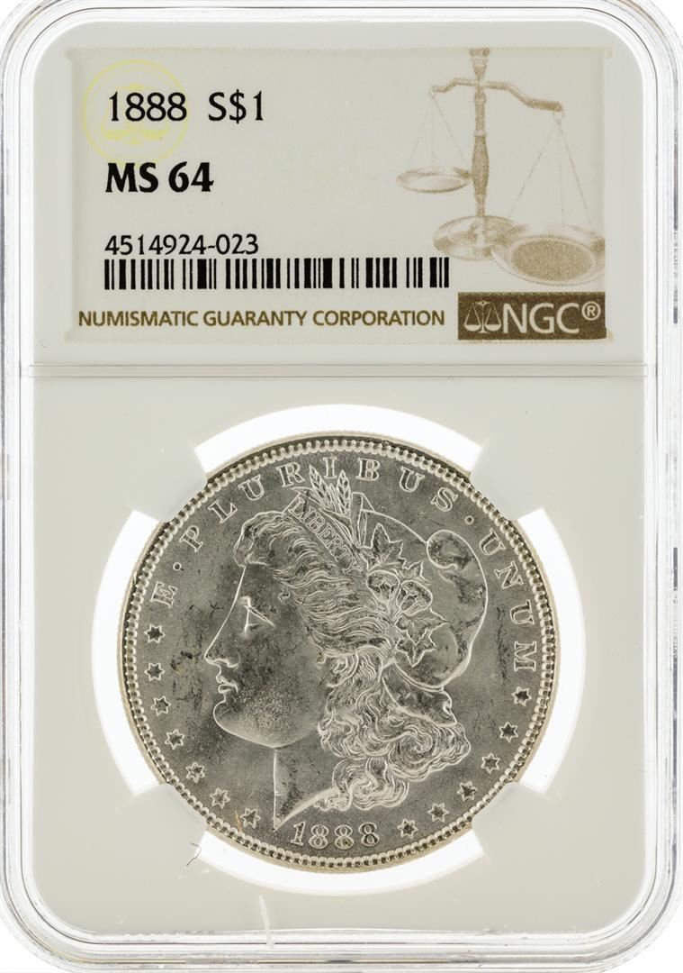 One 1888 NGC MS64 Morgan Silver Dollar. NGC Certified.