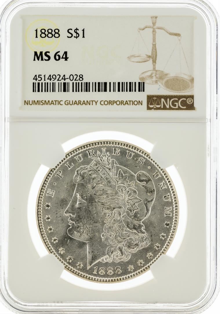 One 1888 NGC MS64 Morgan Silver Dollar. NGC Certified.