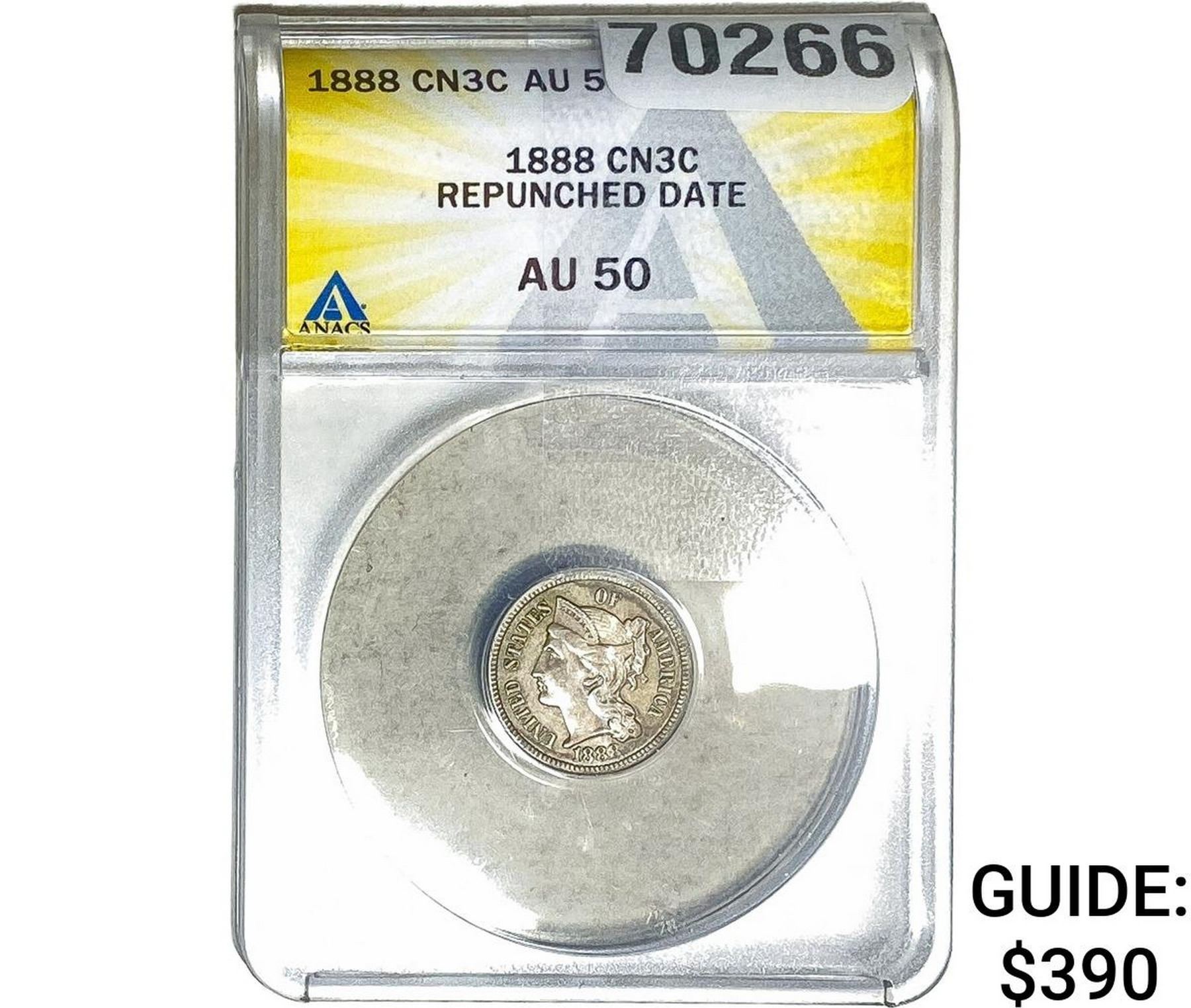 1888 Nickel Three Cent ANACS AU50 Repun. Date CN3C