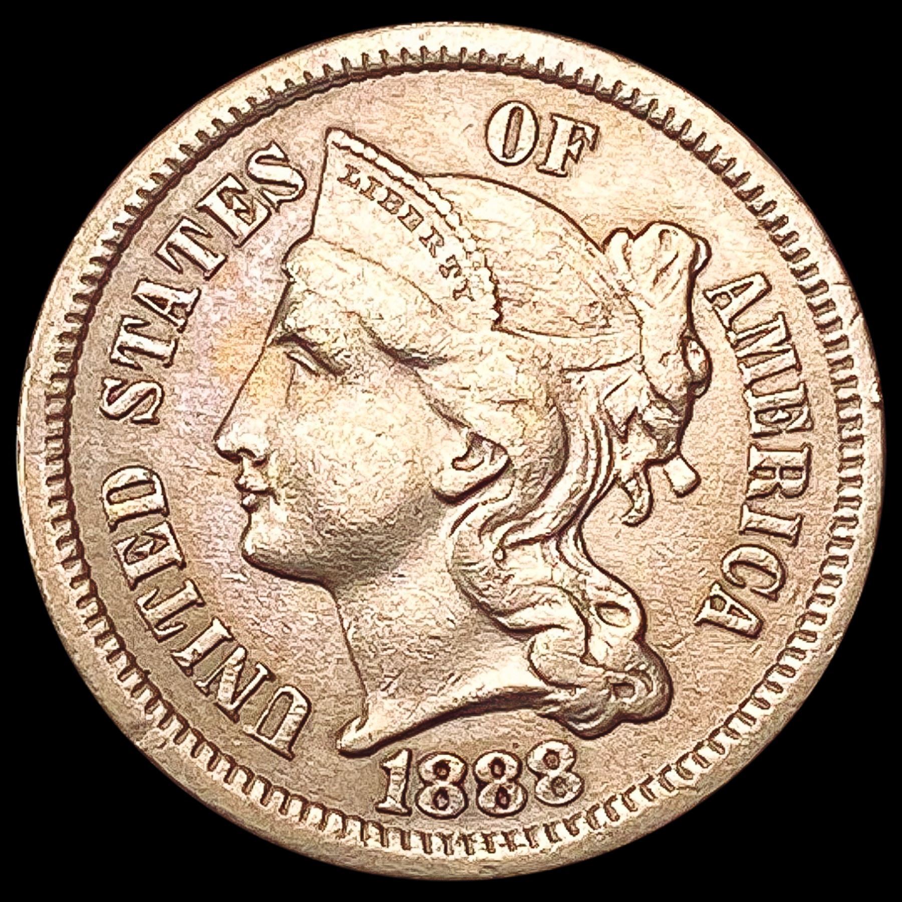 1888 Nickel Three Cent NEARLY UNCIRCULATED