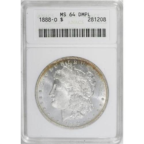 <B>1888-O $1 MS64 Deep Mirror Prooflike ANACS.</B></I> NGC Census: (160/31). PCGS Population (179/60). Numismedia Wsl. Price for NGC/PCGS coin in MS64: $292. (#97185)<BR><BR><b>Shipping:</b> Coins & Currency (<a target="_blank" href="http://www.heritageauctions.com/common/shipping.php">view shipping information</a>)