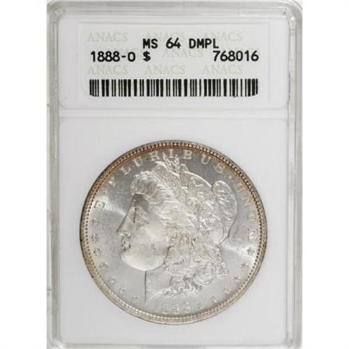 <B>1888-O $1 MS64 Deep Mirror Prooflike ANACS.</B></I> NGC Census: (160/31). PCGS Population (179/60). Numismedia Wsl. Price for NGC/PCGS coin in MS64: $292. (#97185)<BR><BR><b>Shipping:</b> Coins & Currency (<a target="_blank" href="http://www.heritageauctions.com/common/shipping.php">view shipping information</a>)