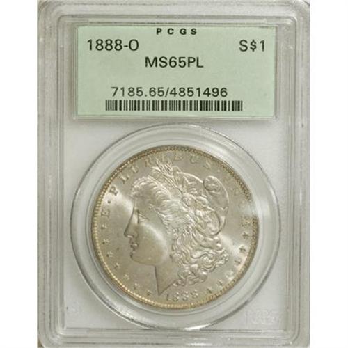 <B>1888-O $1 MS65 Prooflike PCGS.</B></I> PCGS Population (76/8). NGC Census: (60/2). Numismedia Wsl. Price for NGC/PCGS coin in MS65: $550. (#7185)<BR><BR><b>Shipping:</b> Coins & Currency (<a target="_blank" href="http://www.heritageauctions.com/common/shipping.php">view shipping information</a>)