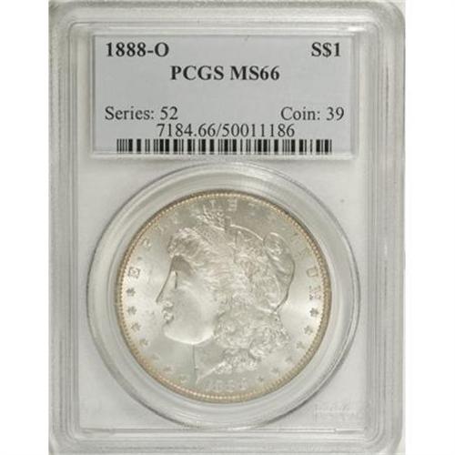 <B>1888-O $1 MS66 PCGS.</B></I> A lustrous Premium Gem with light and original pearl-gray and caramel-gold toning. Crisply struck and beautifully preserved with exemplary eye appeal.<BR><I>From the Reuben Reinstein Collection.</B></I><BR><BR><b>Shipping:</b> Coins & Currency (<a target="_blank" href="http://www.heritageauctions.com/common/shipping.php">view shipping information</a>)