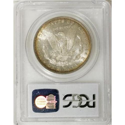 <B>1888-O $1 MS66 PCGS.</B></I> A breathtaking crescent of electric blue toning with amber and magenta at the edge coats one-fourth of the obverse from 4 to 10 o'clock. The rest of the obverse and the center of the reverse are brilliant, with a touch of amber at the periphery of the latter side. Well struck and shining, a piece of surprising quality for this O-mint issue; NGC has graded only one Superb Gem, and this example is tied for the finest certified by PCGS (10/07).<BR><BR><B>Coin Engraver:</B> George T. Morgan<BR><BR><b>Shipping:</b> Coins & Currency (<a target="_blank" href="http://www.heritageauctions.com/common/shipping.php">view shipping information</a>)