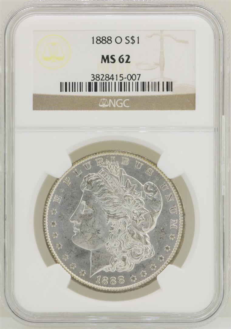 One 1888-O $1 Morgan Silver Dollar Coin NGC MS62. NGC Certified.