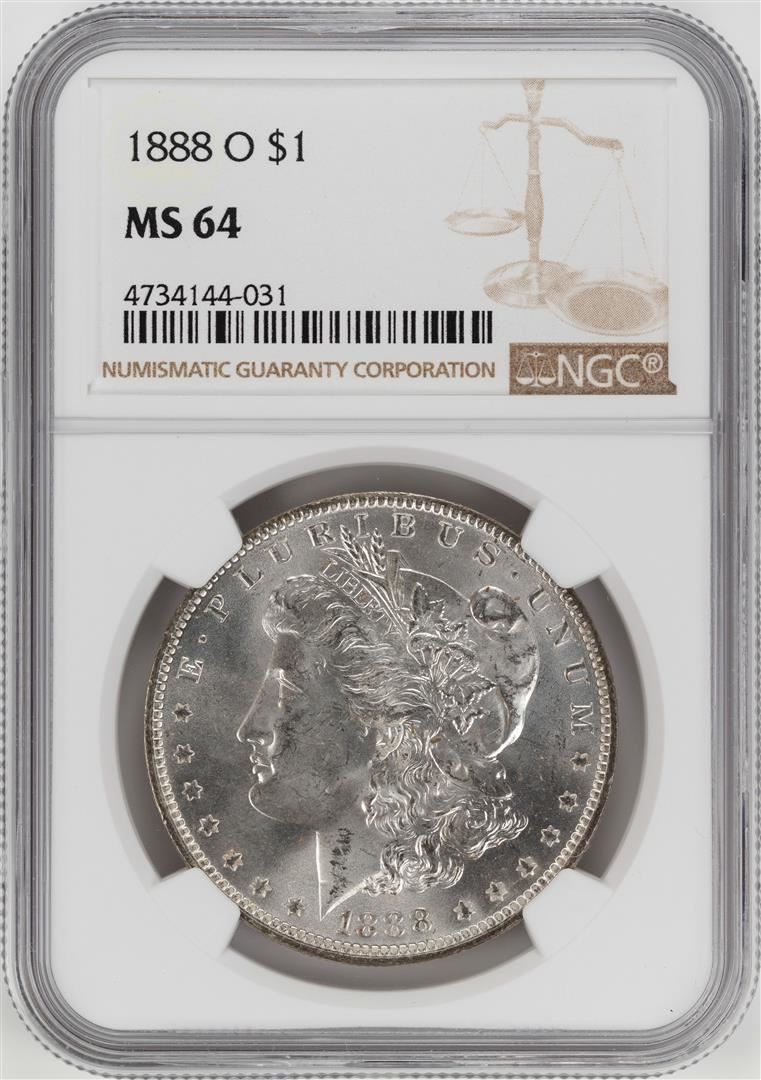 One 1888-O $1 Morgan Silver Dollar Coin NGC MS64. NGC Certified.