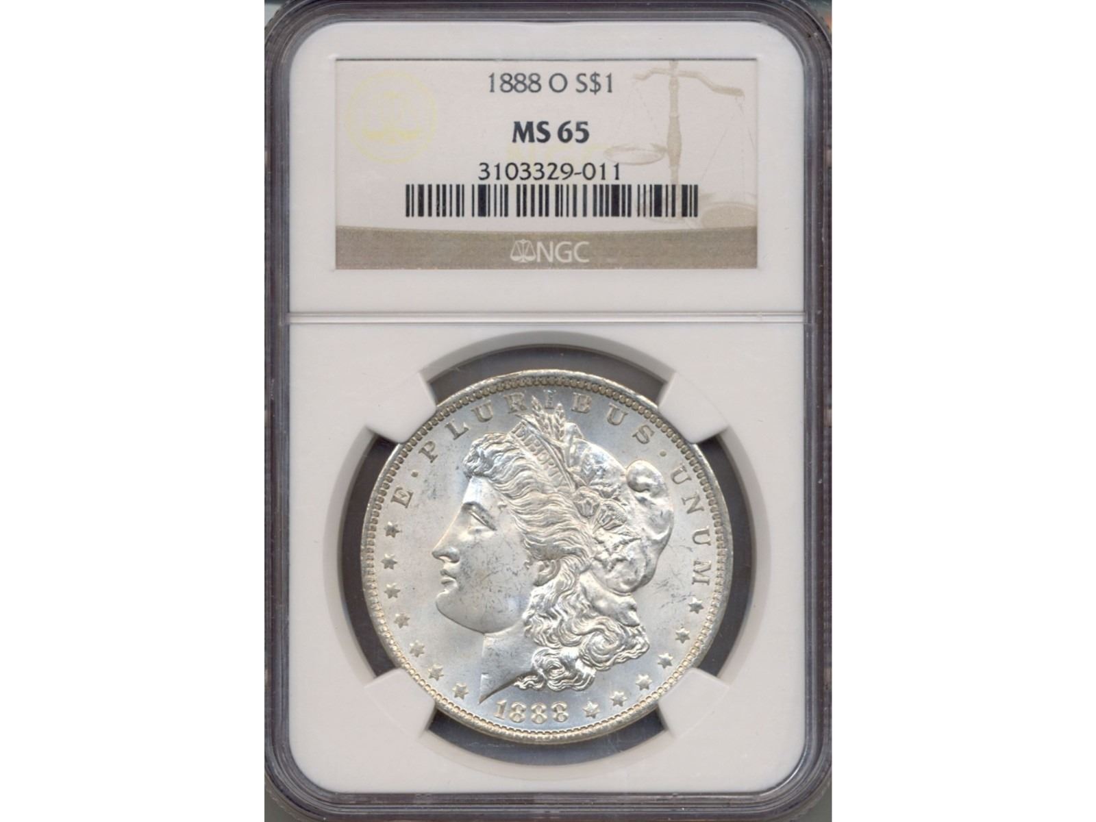 One 1888-O $1 Morgan Silver Dollar Coin NGC MS65.