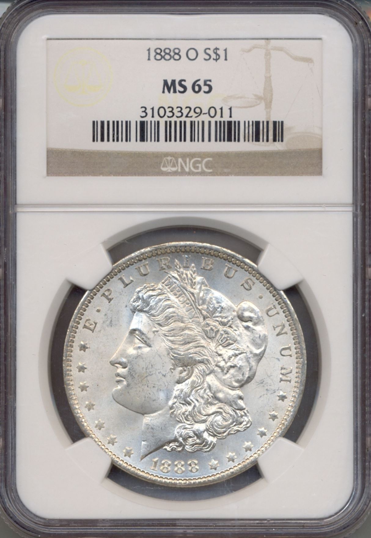 One 1888-O $1 Morgan Silver Dollar Coin NGC MS65.
