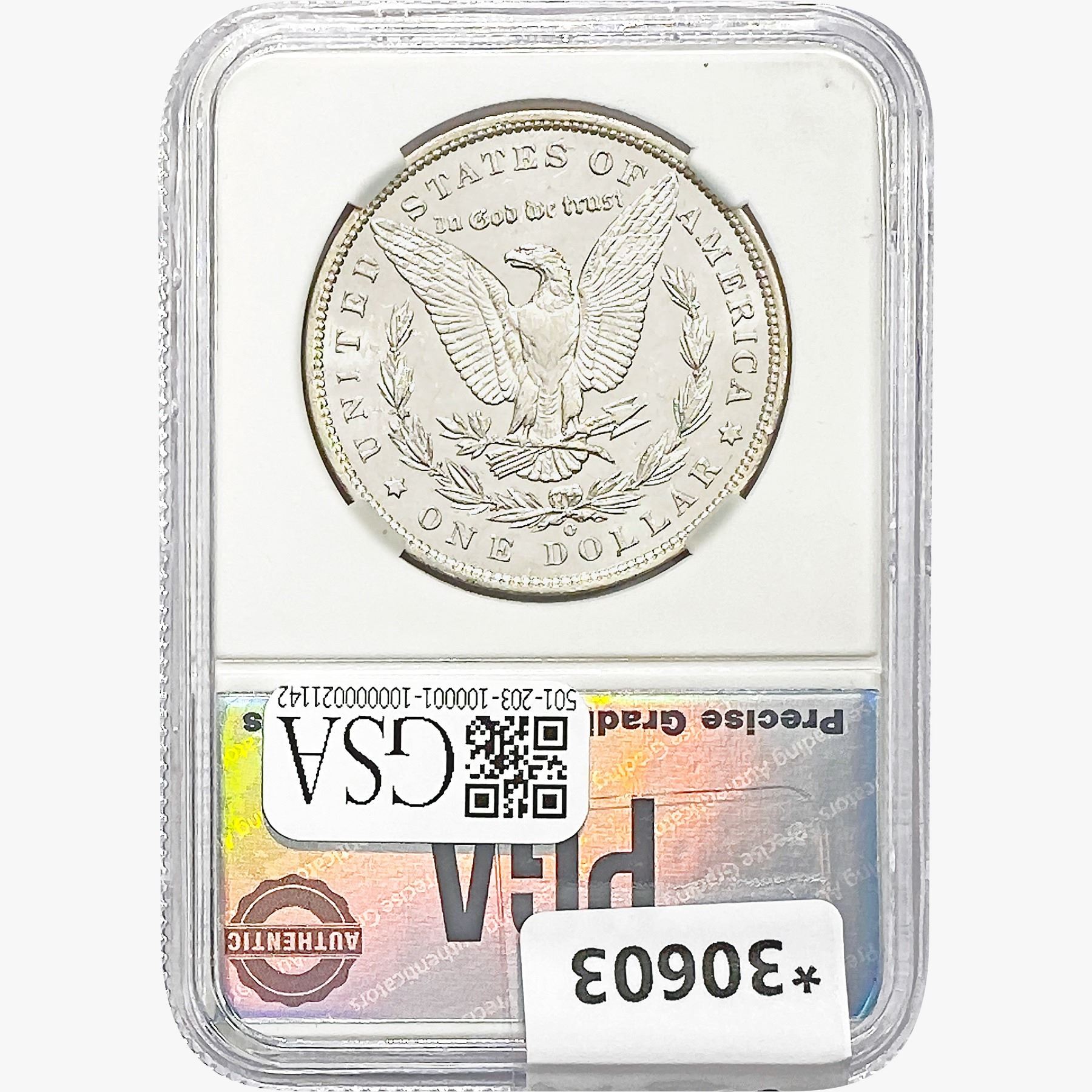 COINS AND CURRENCY LISTED IN GSA’S CATALOG AS GRADED AND ENCAPSULATED BY PCGS, NGC, ANACS, ICG, PCGS CURRENCY, PMG, PCGS BANKNOTE GRADING, CMC OR ANY OTHER THIRD-PARTY GRADING SERVICE ARE LIKEWISE SOLD “AS-IS” EXCEPT AS EXPRESSLY SET FORTH HEREIN. ALL THIRD-PARTY GRADING SERVICE GUARANTEES, INCLUDING AUTHENTICITY, ARE THE SOLE RESPONSIBILITY OF THE THIRD-PARTY GRADING SERVICE AND NOT WARRANTIES OR GUARANTEES OF GSA. BIDDERS SHOULD CONTACT THESE THIRD-PARTY GRADING SERVICES DIRECTLY WITH RESPECT TO ANY CLAIMS OR QUESTIONS THEY MAY HAVE CONCERNING THEIR GUARANTEES AND WARRANTIES. BIDDERS ACKNOWLEDGE AND AGREE THAT AUCTIONEER IS NOT BOUND BY OR LIABLE FOR ANY OPINION OR CERTIFICATION BY ANY THIRD-PARTY GRADING SERVICE. REMOVAL OF A PRODUCT FROM ITS PROTECTIVE CASING OR HOLDER OR ALTERATION OF ANY COIN HOLDER WAIVES ALL RIGHTS CONCERNING THE PRODUCT CONTAINED THEREIN.