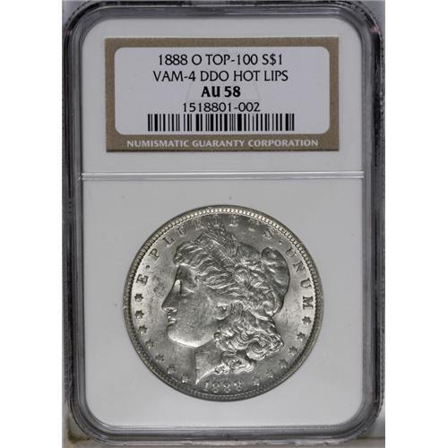 1888-O S$1 AU58 NGC. VAM-4, Top 100 Variety. The "Hot