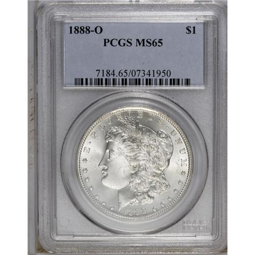1888-O S$1 MS65 PCGS. A brilliant piece with strong lu