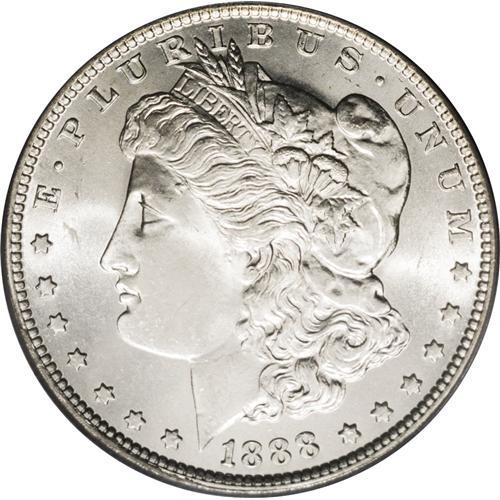 <B>1888-O<img border='0' src='http://www.heritagecoins.com/images/star.gif' width=10 height=10>$1> MS66 PCGS.</B></I> Ex: Jack Lee III. Like so many other Morgan Dollars from the New Orleans Mint, nearly the entire mintage remained in Treasury vaults for several decades, with few released to circulation at the time they were coined. The first large release of these coins occurred shortly after World War II, and continued until the Treasury disbursements of the early 1960s. While this issue was not the rarity of certain other New Orleans Mint issues, it was decidedly elusive for nearly 60 years. Today, however, it is one of the more plentiful dates in the Morgan series. This example is fully brilliant with frosty luster and excellent eye appeal. The surfaces are untoned and exhibit few surface marks of any sort. It is an exceptional example, and among the finest certified by PCGS.<BR><I>From The Michael Casper Collection, Part Three.</B></I>