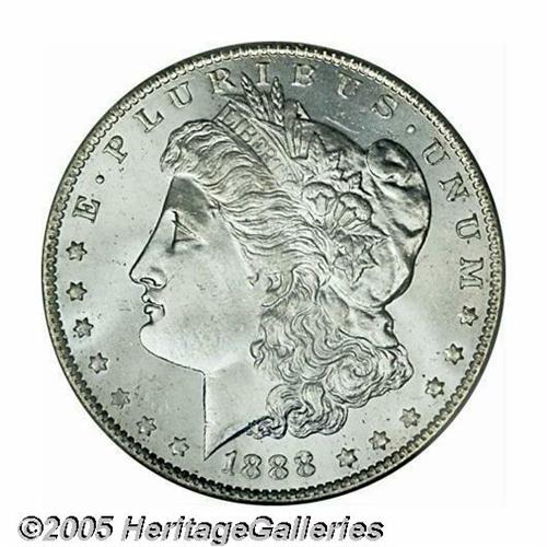 <B>1888-O<S$1> MS66 PCGS.</B></I> Quite unlike most Mint State 1888-O Dollars, this Superb, untoned representative not only was blessed with an outstanding strike and bright, semi-reflective luster, but also managed to avoid significant signs of contact. A must-see '88-O for the quality conscious collector. Population: 106 in 66, 0 finer (4/05).