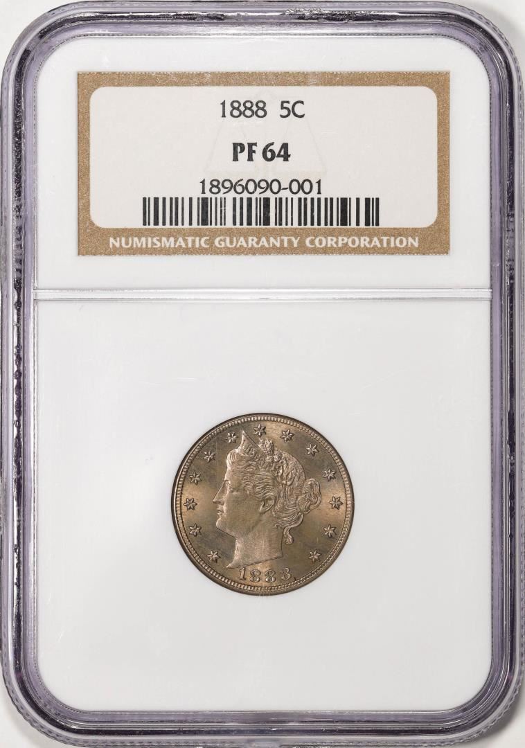 One 1888 Proof Liberty V Nickel Coin NGC PF64. NGC Certified.