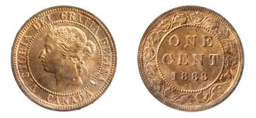 1888. Re-punched middle ‘8’. ICCS Mint State-65. Red. 90% to full red luster.