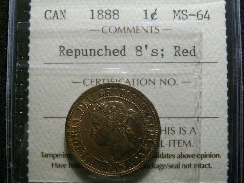 1888 "Repunched 8's 1¢ ICCS MS64 Red, A nice and interesting variety coin.