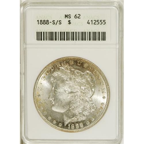 <B>1888-S/S $1 MS62 ANACS.</B></I> NGC Census: (497/1608). PCGS Population (808/2992). Mintage: 657,000. Numismedia Wsl. Price for NGC/PCGS coin in MS62: $225. (#7186)<BR><BR><b>Shipping:</b> Coins & Currency (<a target="_blank" href="http://www.heritageauctions.com/common/shipping.php">view shipping information</a>)