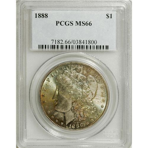 1888 S$1 MS66 PCGS. Gorgeous obverse toning in shades