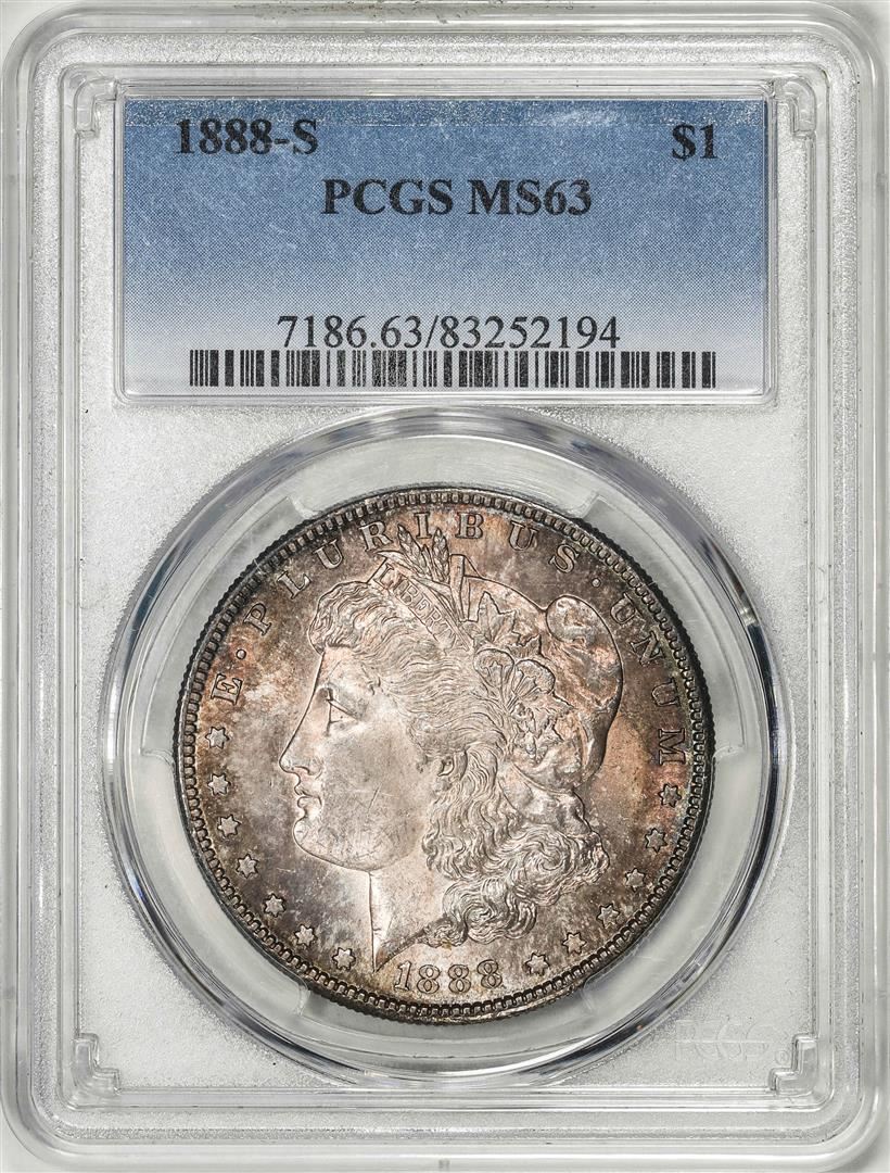 One 1888-S $1 Morgan Silver Dollar Coin PCGS MS63 Nice Toning. PCGS Graded.