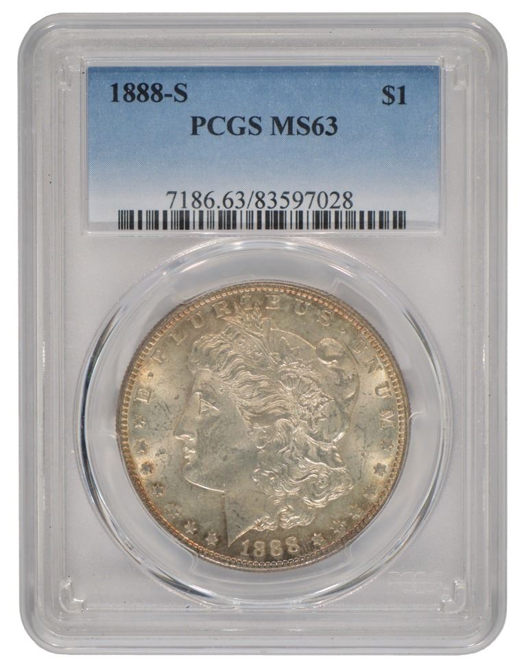 One 1888-S $1 Morgan Silver Dollar Coin PCGS MS63.