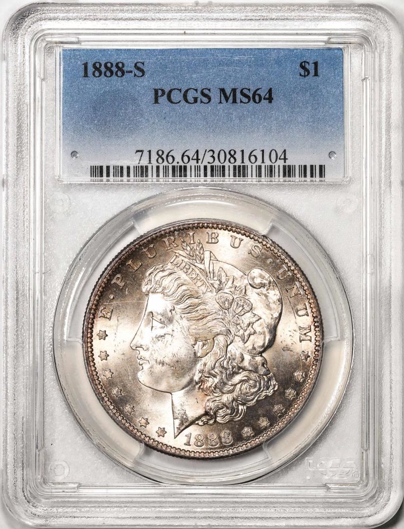 One 1888-S $1 Morgan Silver Dollar Coin PCGS MS64 Nice Toning. PCGS Graded.