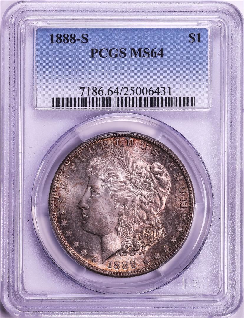One 1888-S $1 Morgan Silver Dollar Coin PCGS MS64. PCGS Graded.