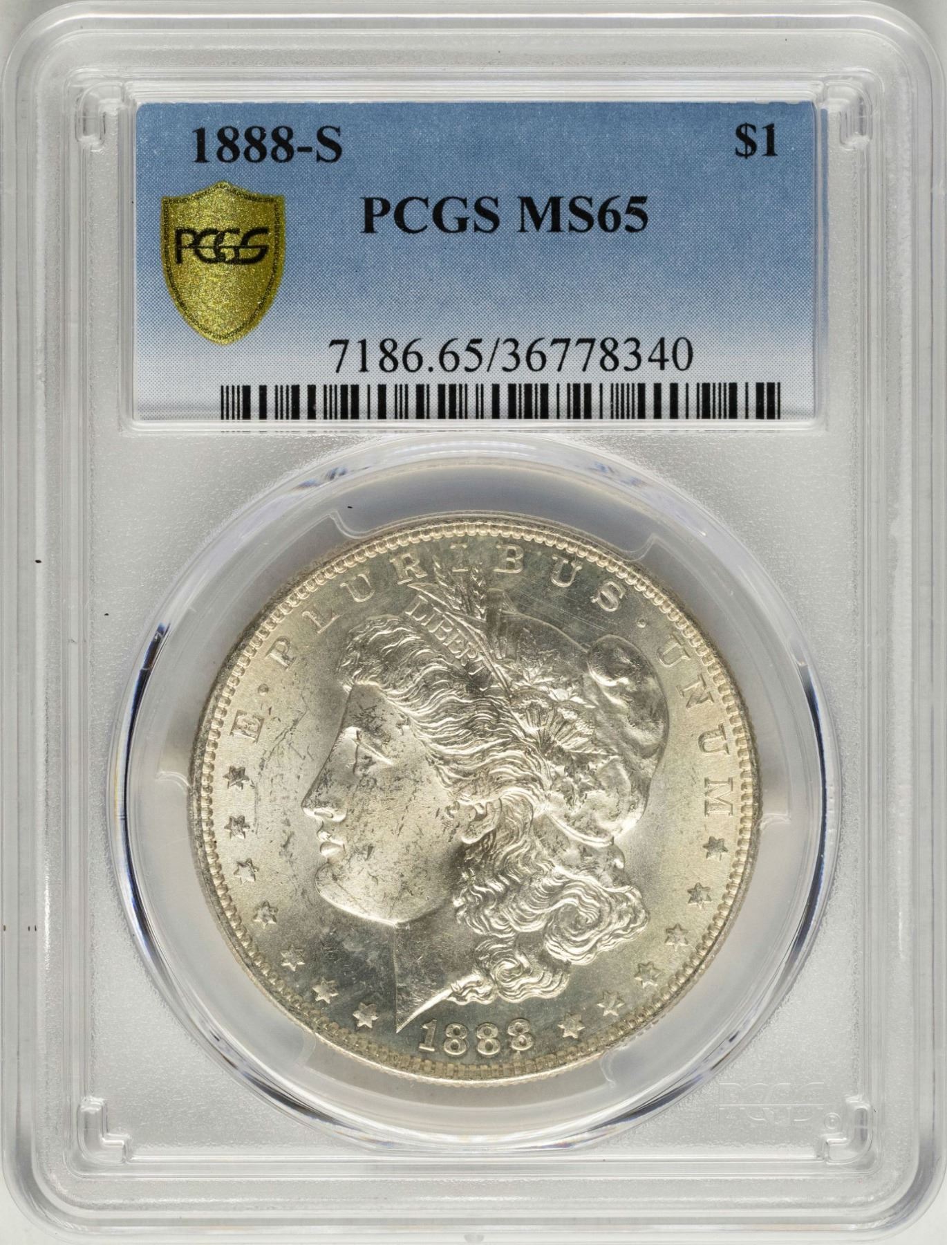 One 1888-S $1 Morgan Silver Dollar Coin PCGS MS65.