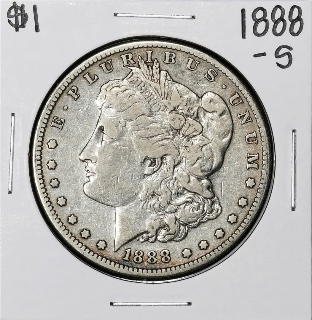 One 1888-S $1 Morgan Silver Dollar Coin.