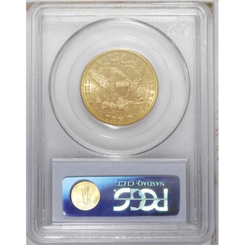 <B>1888-S $10 MS63 PCGS.</B></I> This piece offers lustrous orange-gold surfaces and minimal marks. Although widely seen in MS61 and MS62, the population drops precipitously at the MS63 level. The strike is generally bold, and the blazing luster is exceptional. Population: 80 in 63, 2 finer (9/06).<BR><BR><b>Shipping:</b> Coin/Currency (<a target="_blank" href="http://www.heritageauctions.com/common/shipping.php">view shipping information</a>)