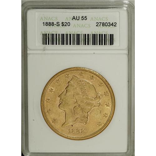 1888-S $20 AU55 ANACS. NGC Census: (20/1878). PCGS