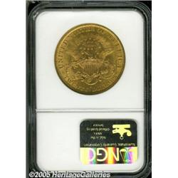 <B>1888-S $20 MS61 NGC.</B></I> This is a well struck piece with bright, sparkling luster. The grade is defined by moderate obverse scuffiness.