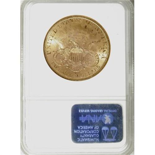 <B>1888-S $20 MS61 NGC.</B></I> NGC Census: (682/895). PCGS Population (333/1110). Mintage: 859,600. Numismedia Wsl. Price for NGC/PCGS coin in MS61: $900. (#9009)<BR><BR><B>Coin Engraver:</B> James B. Longacre<BR><BR><b>Shipping:</b> Coins & Currency (<a target="_blank" href="http://www.heritageauctions.com/common/shipping.php">view shipping information</a>)