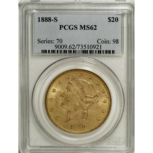 1888-S $20 MS62 PCGS. Although this date ranks among t