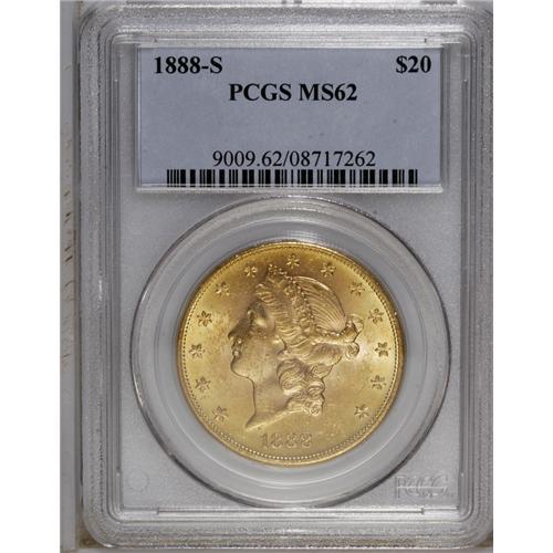 1888-S $20 MS62 PCGS. Typically struck with highly lus