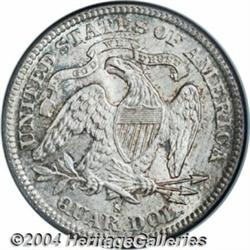 <table><tr><td><table><tr><td>1888-S 25C MS65 NGC. The 1888-S holds the distinction of being the only mintmarked quarter dollar from the 1880s, and it is, in fact, much scarcer than its more famous P-mint counterpart. This particular coin is sharply struck throughout with strong mint luster that underlies the gray patina seen over each side, and the margins frame the gray centers with subtle gradations of pale blue. There are no reportable abrasions on either side of this scarce and important late-date quarter. Population: 10 in 65, 7 finer (3/04).From the Robert Bowling Collection. <BR><BR><B>Important notice:</B> Heritage usually auctions material at the rate of 200-250 lots per hour. On some occasions eBay Live bid software or the Internet may not be able to keep up with the pace of the auction. We recommend placing a realistic absentee bid now as insurance to avoid disappointment. Occasionally the auctioneer may eliminate or reject an eBay Live bid, and the auctioneer may also reopen a lot after the close of the eBay live bidding (usually because we missed an audience bid), and may reject your bid even if it shows you as the winning bidder. By bidding via eBay Live, you agree that Heritage may award the lot to another bidder at its sole discretion under the circumstances described above or any other reasonable circumstances. Since eBay bids are not shown to us until we open the lot on the floor, we treat those bids just like floor bids. In most cases the floor responds before the eBay bid is presented to us, due to Internet lag time, so for consistency we have made it a policy that floor bids are always considered first over tie eBay live bids. Also please note that all Heritage lots purchased through eBay Live carry a 20% Buyer's Premium. Please make sure you read the Terms and Conditions before you bid. <BR><BR><B>IMPORTANT ANNOUNCEMENT ABOUT RESERVES:</B> Heritage now divulges all reserves on its web site 7 days before every auction. If you want to know whether the reserve on this lot has been met, and if not, what the reserve amount is, please visit this lot page on the HeritageCoin.com web site, or email: bid@HeritageGalleries.com </span></font></td></tr></table></td></tr></table>