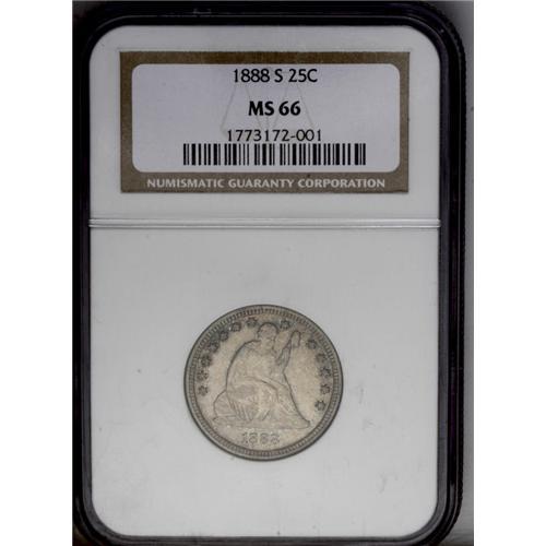 1888-S 25C MS66 NGC. Although not a rare date, this is 1888-S[25C] MS66 NGC.