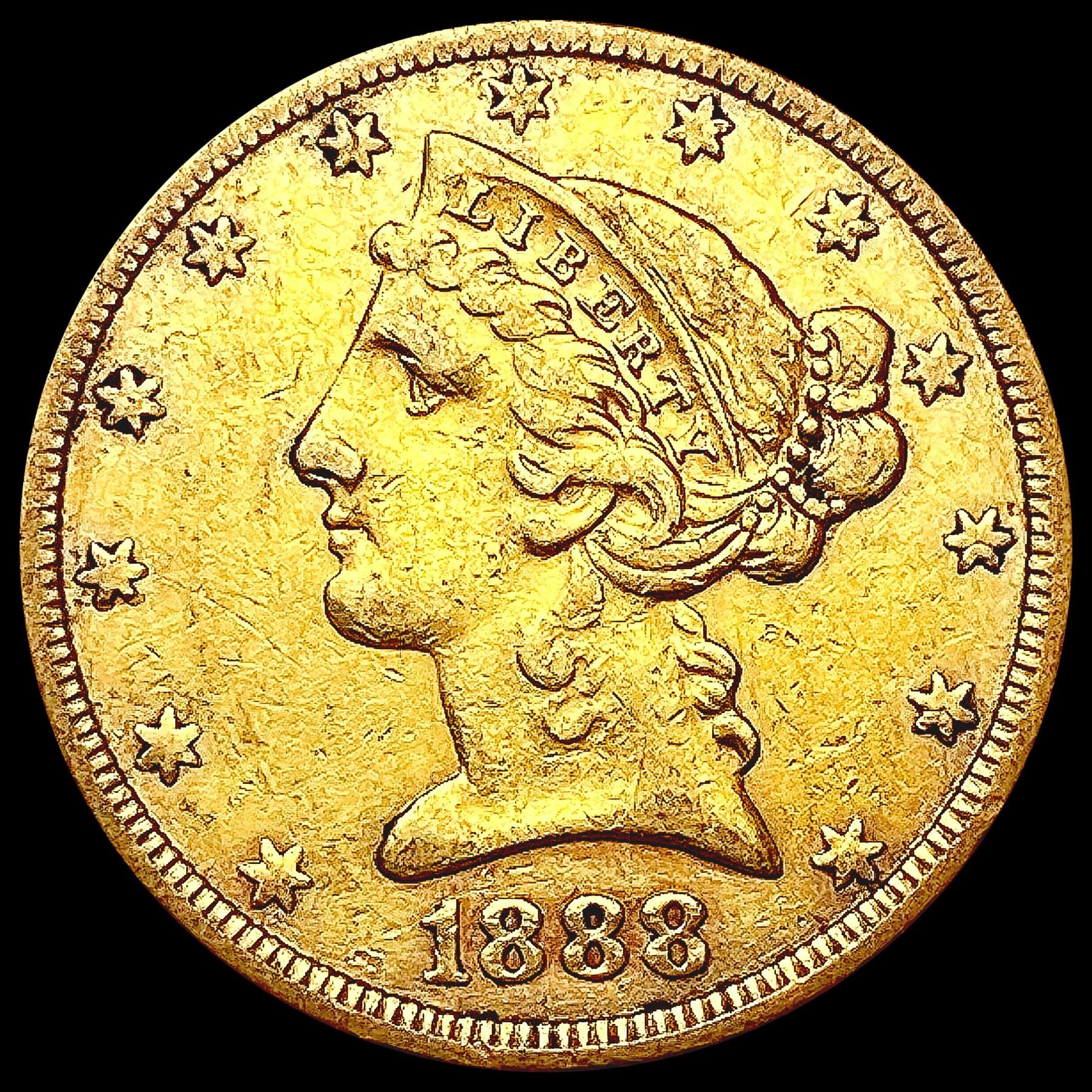 1888-S $5 Gold Half Eagle CLOSELY UNCIRCULATED