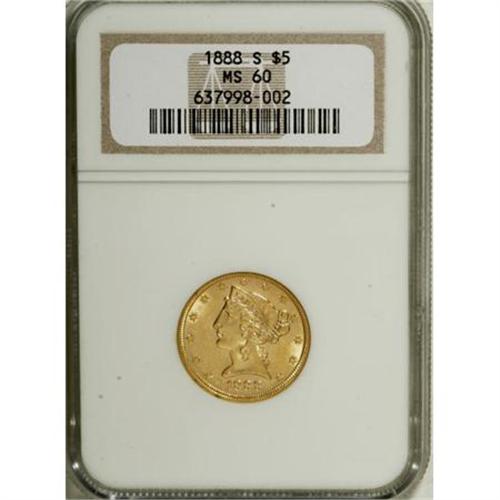 1888-S $5 MS60 NGC. NGC Census: (13/46). PCGS Popu