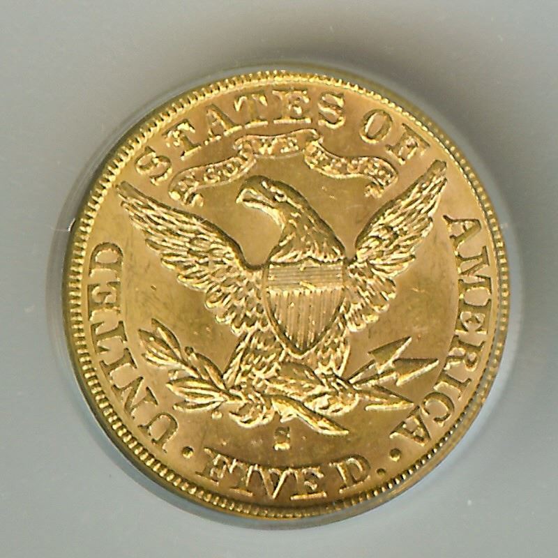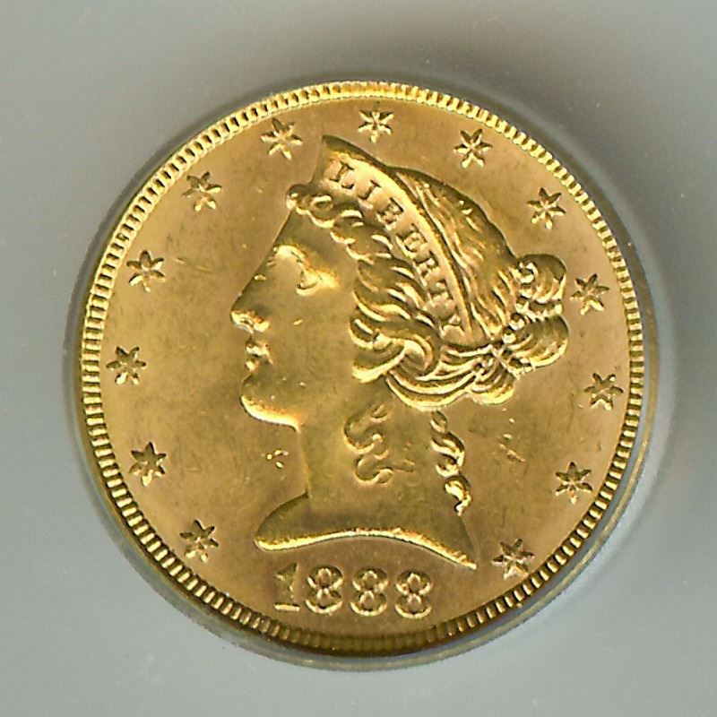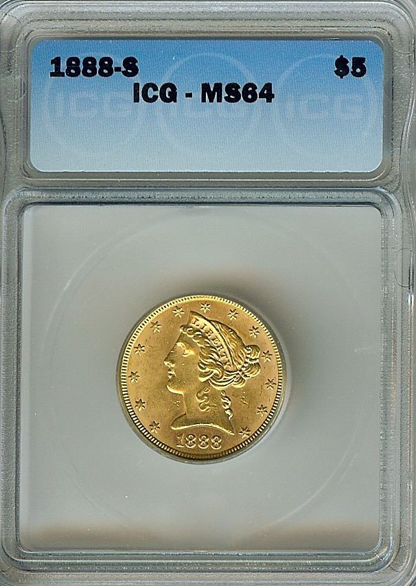 MOST OF THE COINS SEEN OF THIS ISSUE APPEAR VERY BAGMARKED, AND ONES WITH GOOD EYE APPEAL ARE RARE. THE 1888-S HALF EAGLE HAS VERY LOW POPULATION NUMBERS IN MINT STATE, AND COINS AT THE HIGH END OF THE SCALE ARE JUST AS RARE AS MANY BRANCH MINT ISSUES. NEITHER PCGS OR NGC HAVE A 1888-S LIBERTY HEAD $5 GOLD HALF EAGLE GRADED MS64 OR HIGHER.