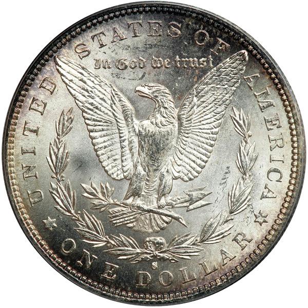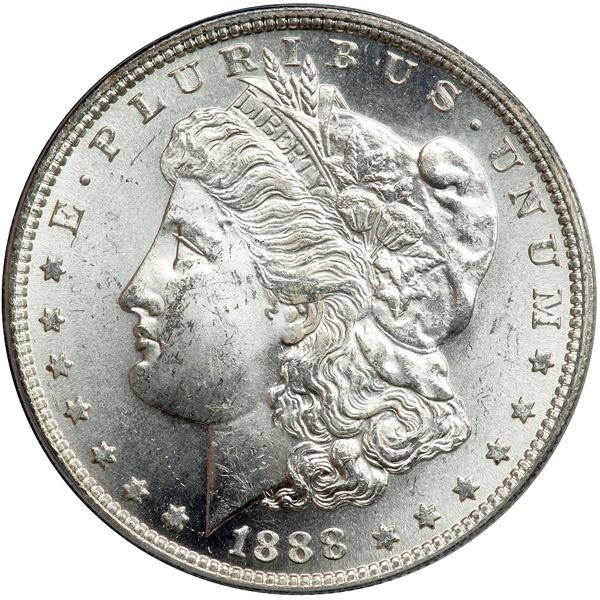 1888-S Morgan Dollar. PCGS graded MS-64. Well struck and mostly white, with typical 1880s era high standards for sharp strike and luster vibrancy. Only 657,000 made (PCGS # 7186) .