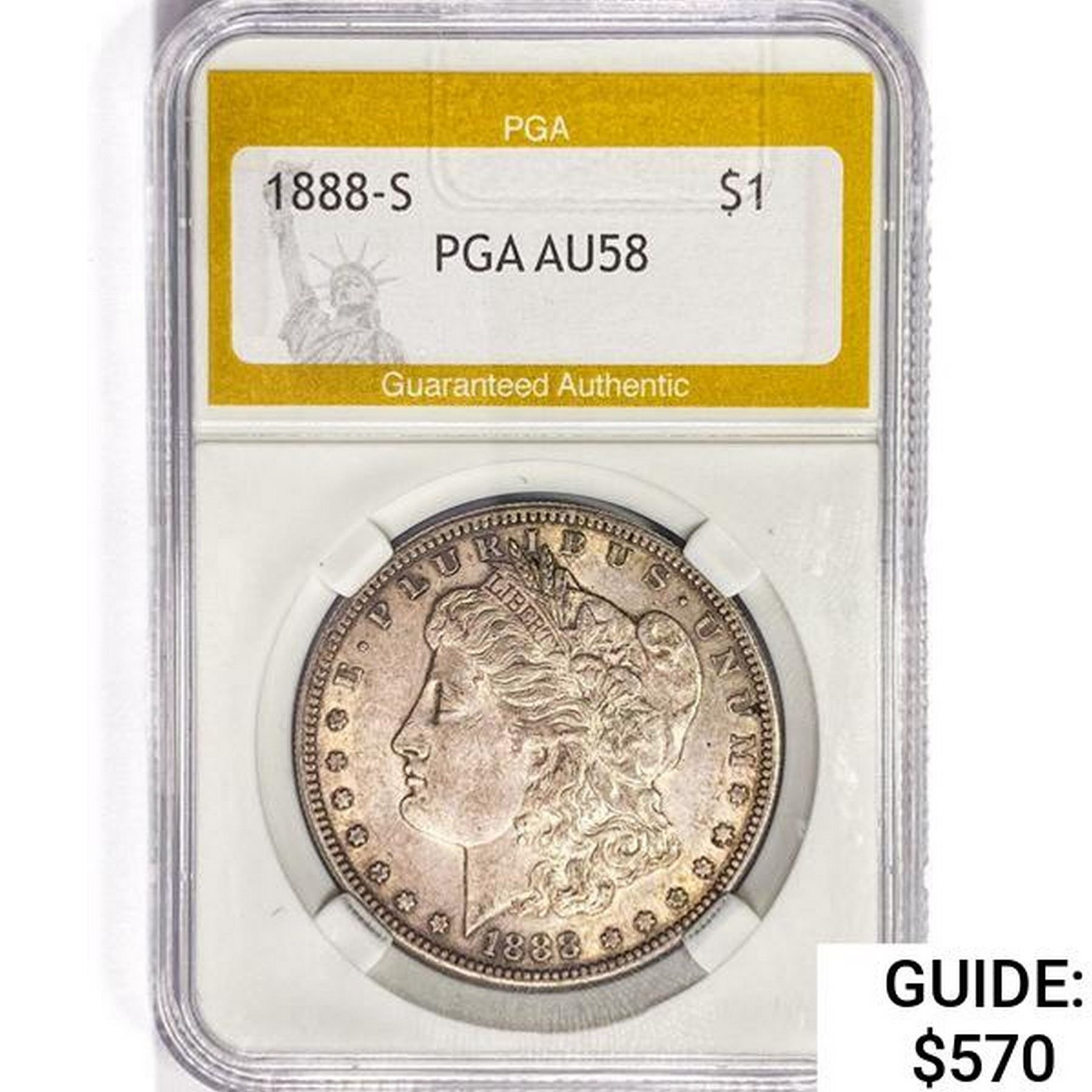 COINS AND CURRENCY LISTED IN GSA'S CATALOG AS GRADED AND ENCAPSULATED BY PCGS, NGC, ANACS, ICG, PCGS CURRENCY, PMG, PCGS BANKNOTE GRADING, CMC OR ANY OTHER THIRD-PARTY GRADING SERVICE ARE LIKEWISE SOLD "AS-IS" EXCEPT AS EXPRESSLY SET FORTH HEREIN. ALL THIRD-PARTY GRADING SERVICE GUARANTEES, INCLUDING AUTHENTICITY, ARE THE SOLE RESPONSIBILITY OF THE THIRD-PARTY GRADING SERVICE AND NOT WARRANTIES OR GUARANTEES OF GSA. BIDDERS SHOULD CONTACT THESE THIRD-PARTY GRADING SERVICES DIRECTLY WITH RESPECT TO ANY CLAIMS OR QUESTIONS THEY MAY HAVE CONCERNING THEIR GUARANTEES AND WARRANTIES. BIDDERS ACKNOWLEDGE AND AGREE THAT AUCTIONEER IS NOT BOUND BY OR LIABLE FOR ANY OPINION OR CERTIFICATION BY ANY THIRD-PARTY GRADING SERVICE. REMOVAL OF A PRODUCT FROM ITS PROTECTIVE CASING OR HOLDER OR ALTERATION OF ANY COIN HOLDER WAIVES ALL RIGHTS CONCERNING THE PRODUCT CONTAINED THEREIN.
